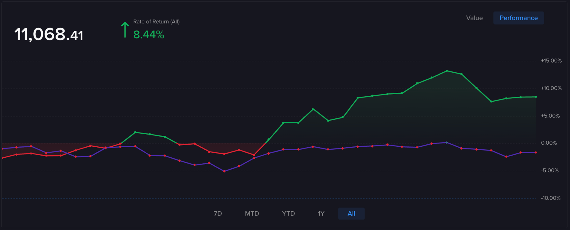 That would’ve put us back up above 10% returns since starting on November 1st, but oh well. We are still beating the S&P quite handily (so far).