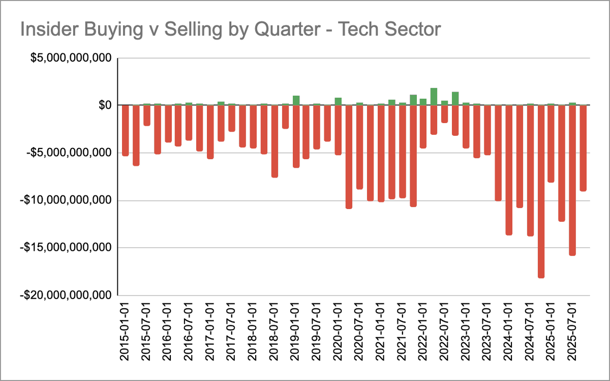 But this lack of insider buying / massive amount of insider selling in tech companies also has a couple of other important effects.