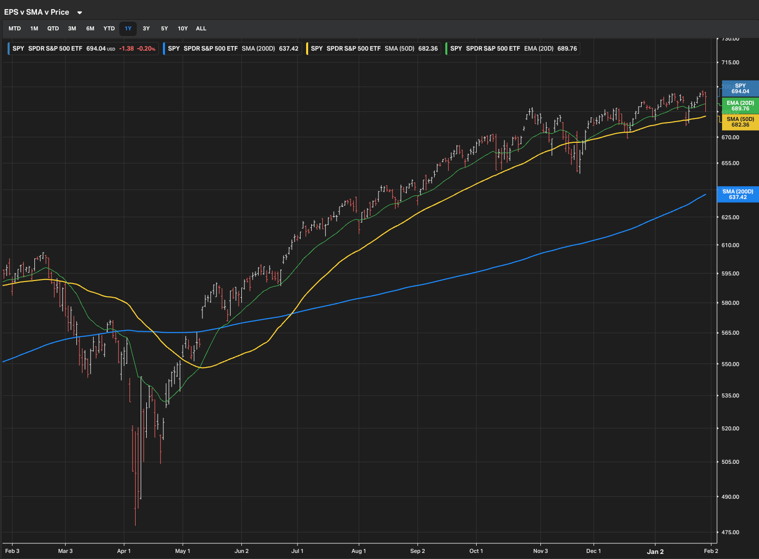 The S&P also continues to weaken a little bit, with this week’s high just barely edging out the previous high from January 12th.