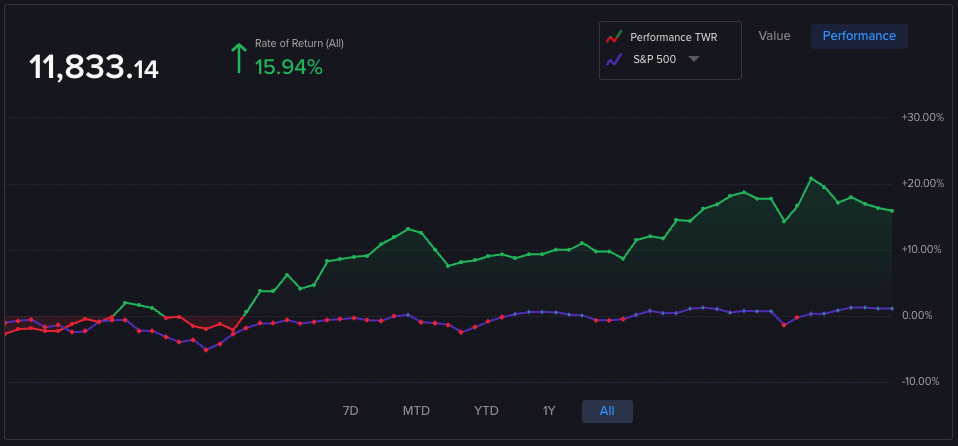 On the bright side, we are still crushing the S&P since inception on November 1st.