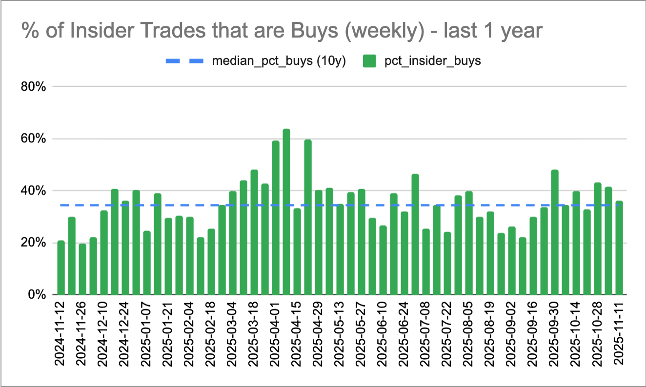 There were 283 new insider trades filed. It was a slightly less bullish day (and a slightly less bullish week) than we’ve been having to start November, but nothing too worrisome yet.
