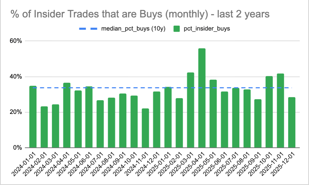 December will likely finish as a below-average month and well below October and November, when we saw a lot of insiders buying stock (especially after Q3 earnings dips).