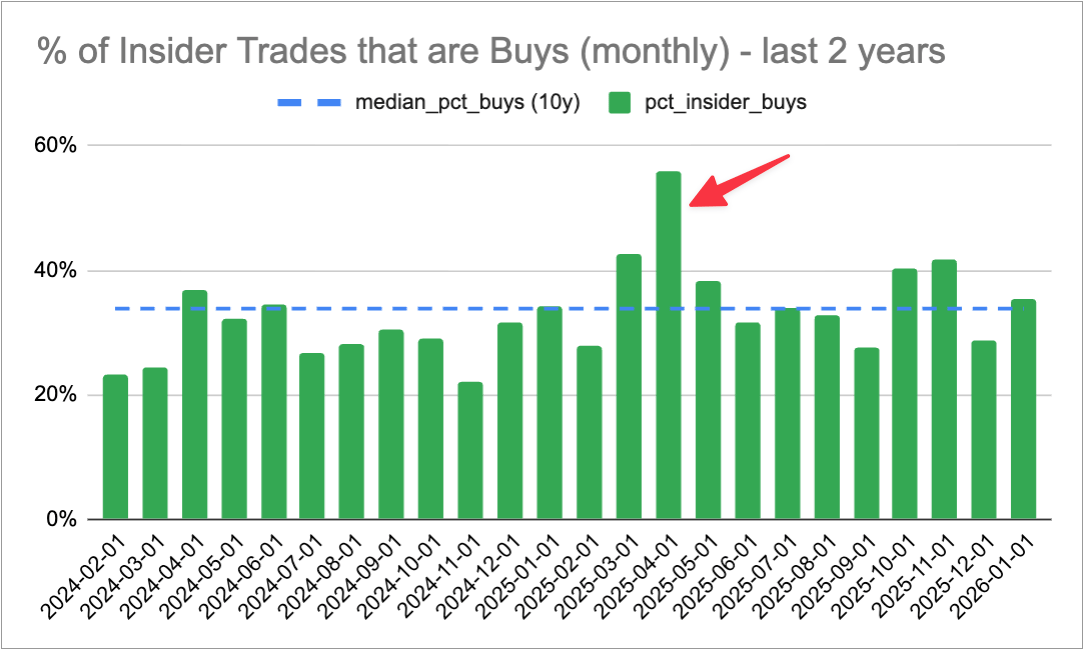 We saw a huge spike in insider buying in April after Liberation Day. In fact, it was by far the biggest spike in the last two years.