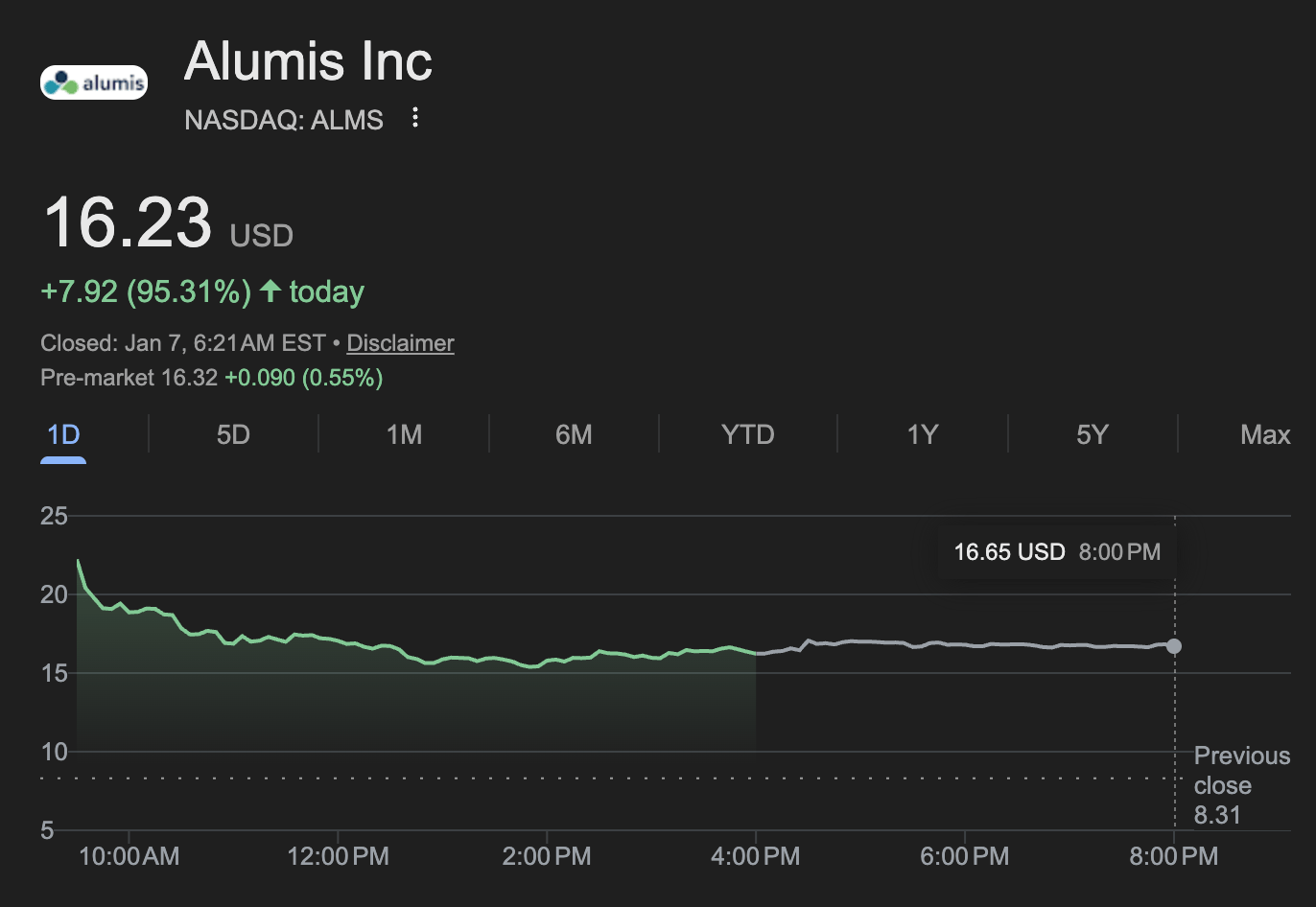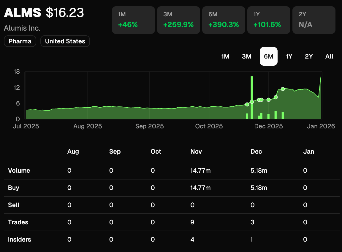 Alumis (ALMS) popped nearly 100% yesterday after Phase 3 psoriasis trial results.